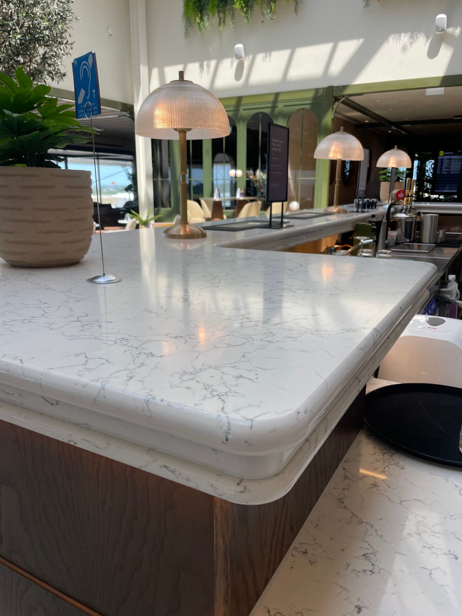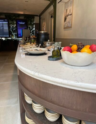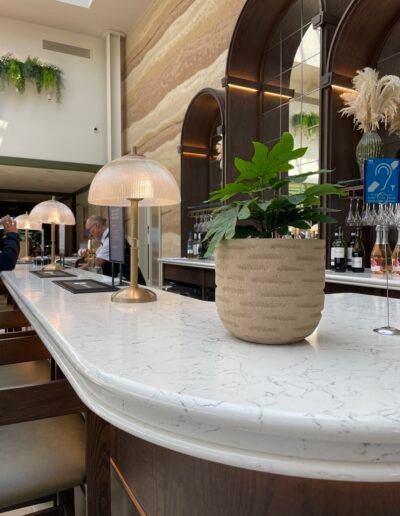 Main bar, kitchen bar, window sills, coffee station, reception desk & bathroom worktops