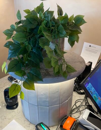 A bit about this project: This installation of kitchen worktop displays and desks showcases a diverse selection of premium surfaces featuring Dekton and Silestone (both from Cosentino) as well as Caesarstone. There are a variety of styles, from sleek, contemporary finishes to classic, elegant designs. Each surface highlights the unique beauty and durability of the material, providing inspiration and functionality for Romerils’ showroom and clients alike.